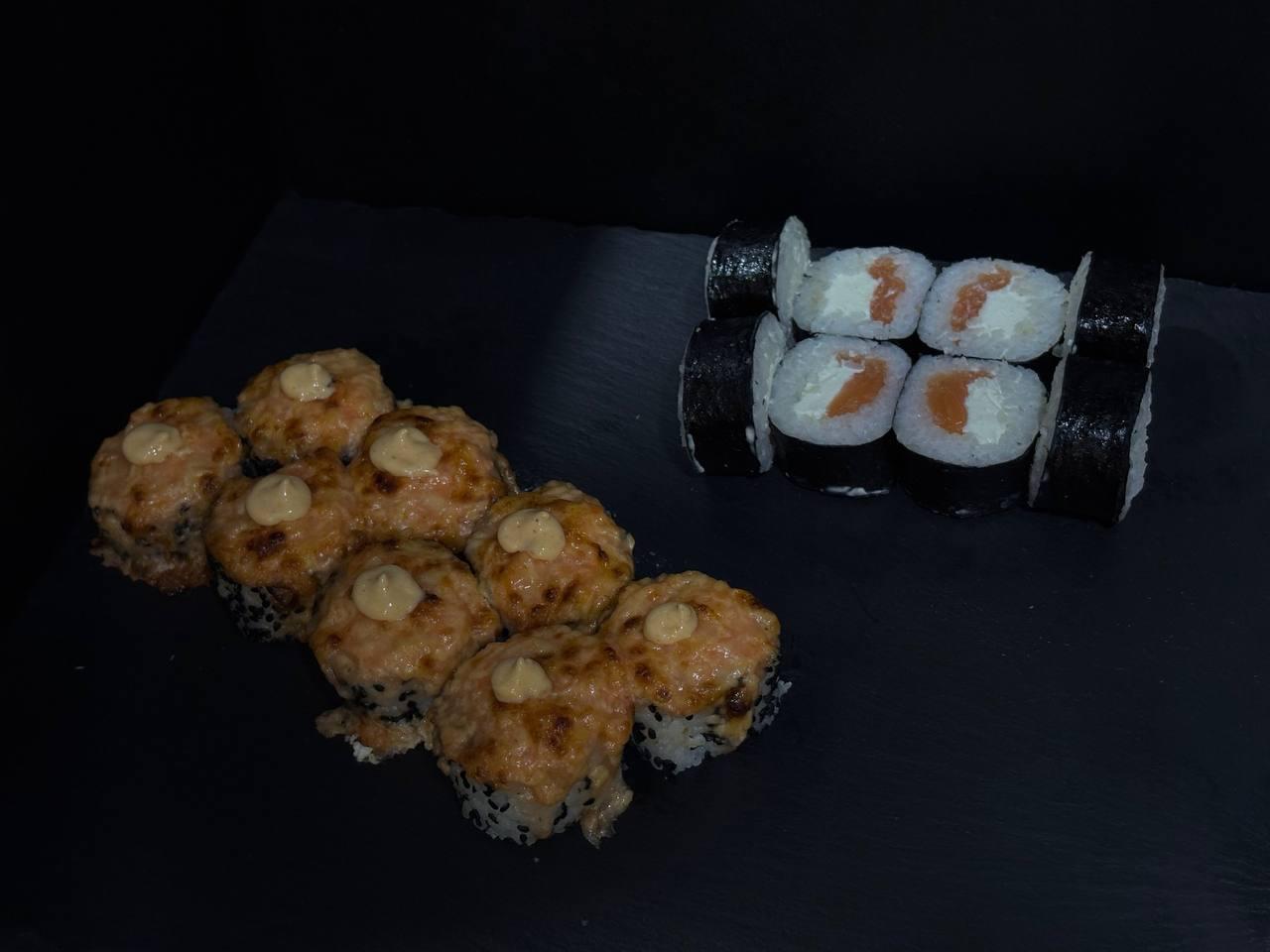 Cream cheese, tiger prawns, sesame, cheese salad, mayonnaise, salmon