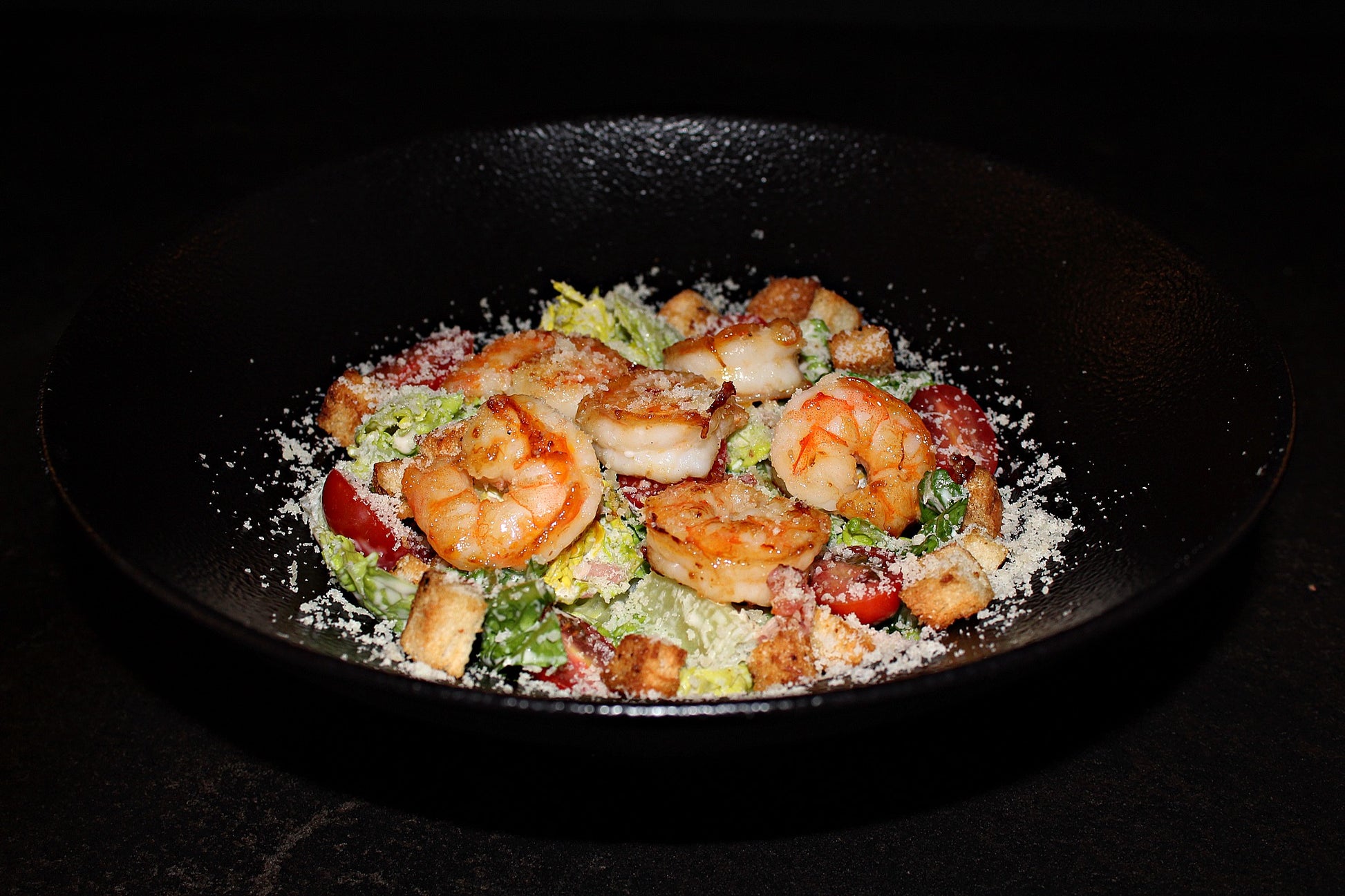 Заправка «Цезарь», салат ромэн, гренки, твердый сыр