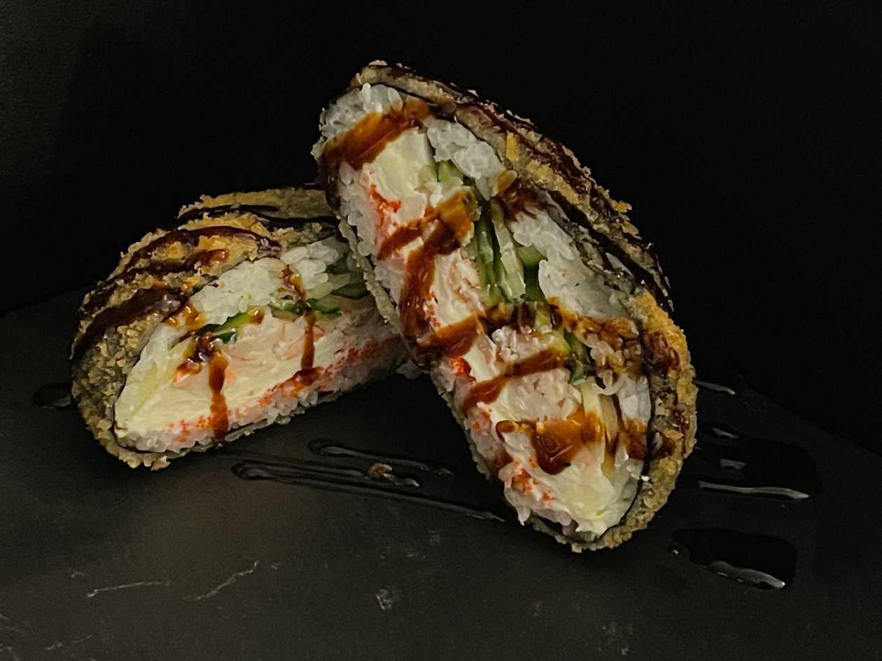 Сурими, огурец, сливочный сыр, икра масаго, соус унаги