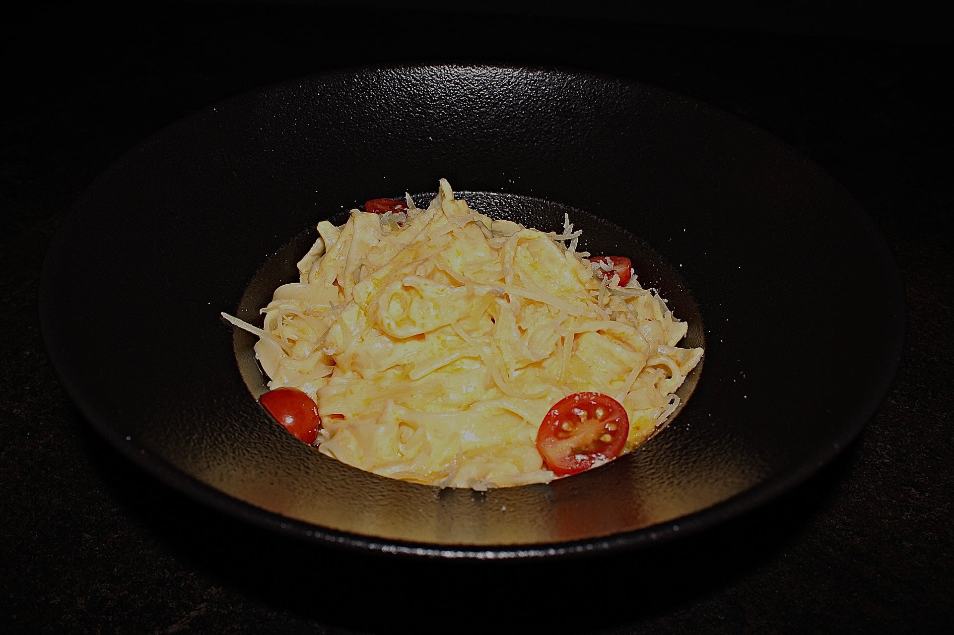 (паста, помидоры черри, сметана, пармезан, сыр чеддер)
