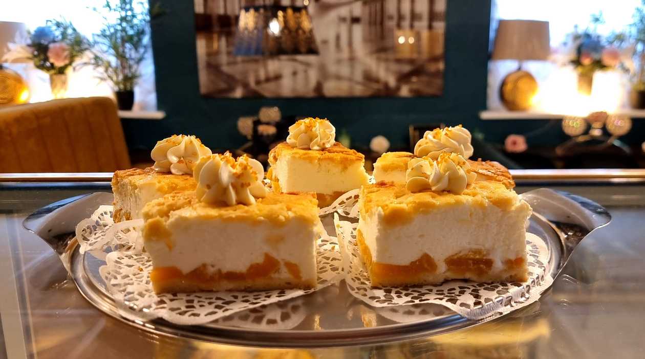 Персики, йогурт, сметана, яйца, мука, сахарная пудра, масло.