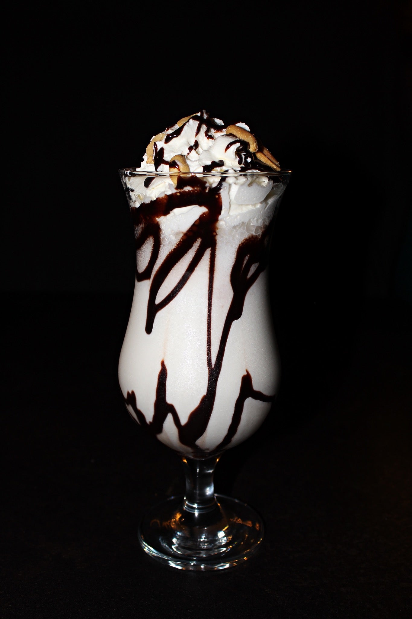 Ванильное мороженое, молоко, соленая арахисовая паста, шоколадный крем, соленый арахис, взбитые сливки